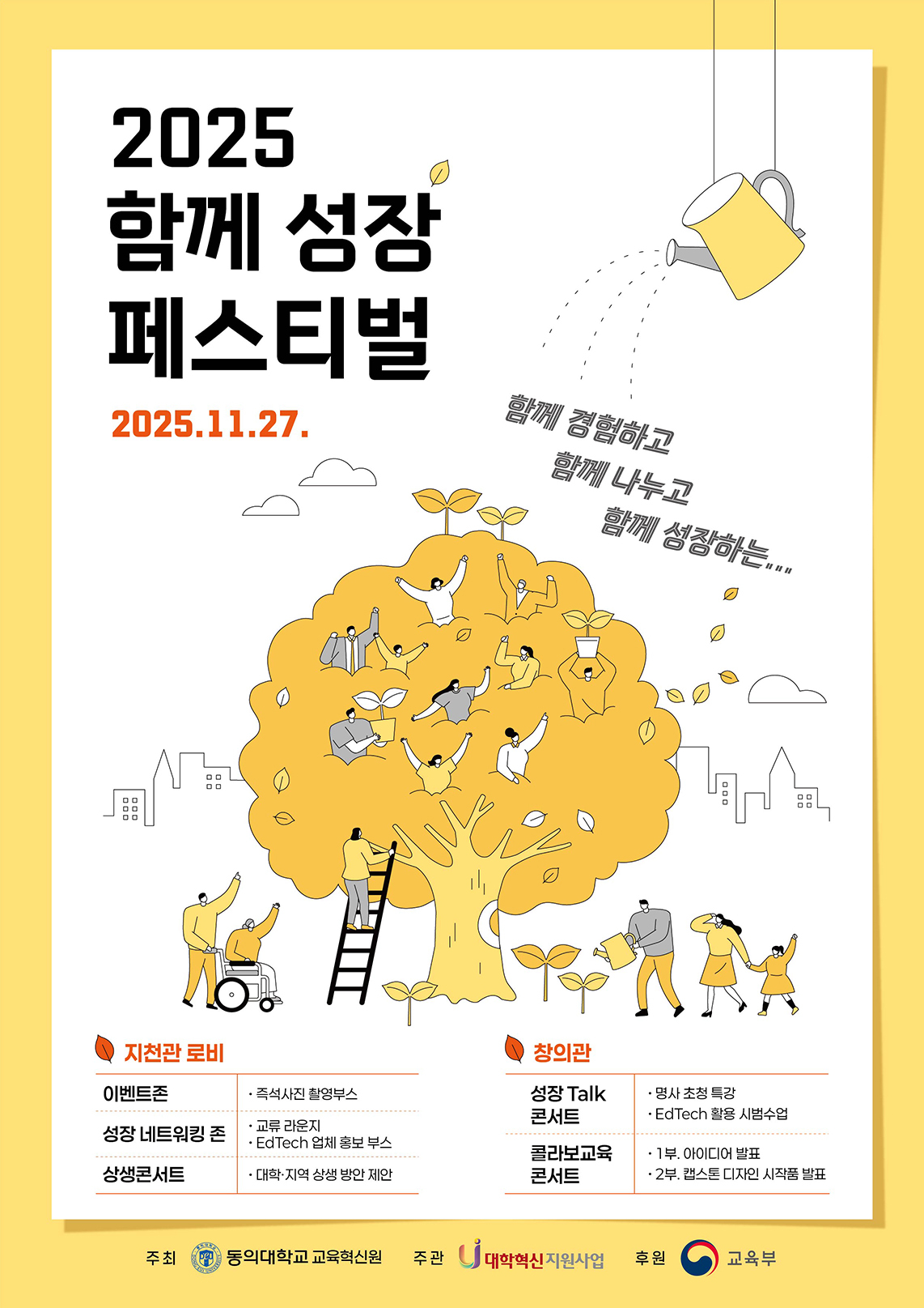 동의대학교 교육혁신원에서는 “2025년 함께 성장 페스티벌”행사를 다음과 같이 진행 하오니 많은 참여 바랍니다.